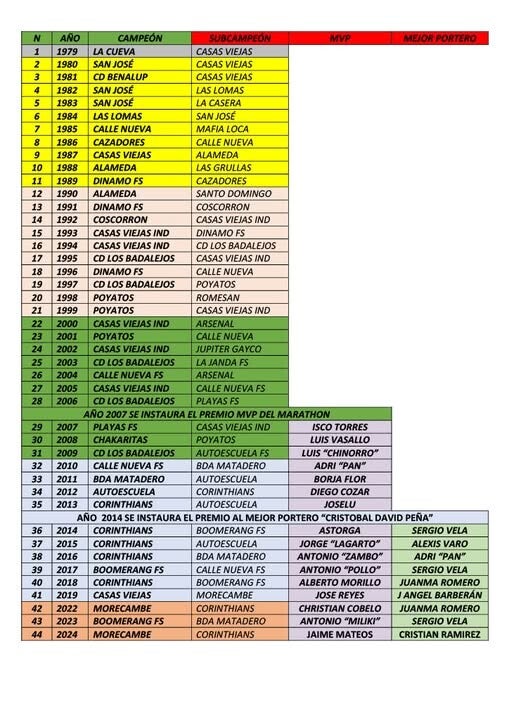 En el palmarés, falta el equipo vencedor de la 45 EDICIÓN